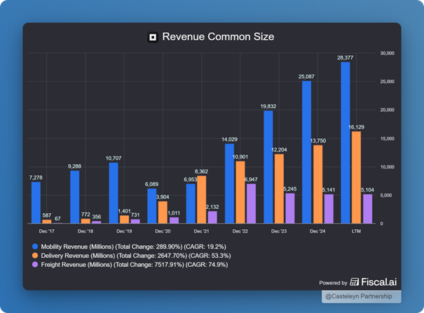 Diversification: Significant expansion into Uber Eats and Uber Freight created a multi-layered ecosystem.